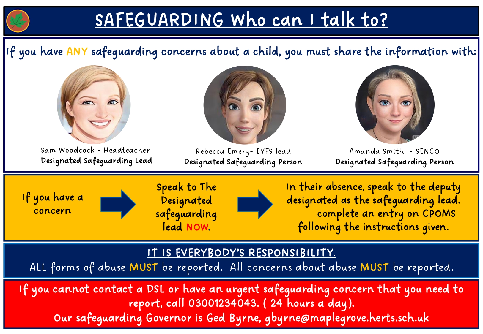 Should you have any concerns, the Designated Safeguarding Leads at Maple Grove are: